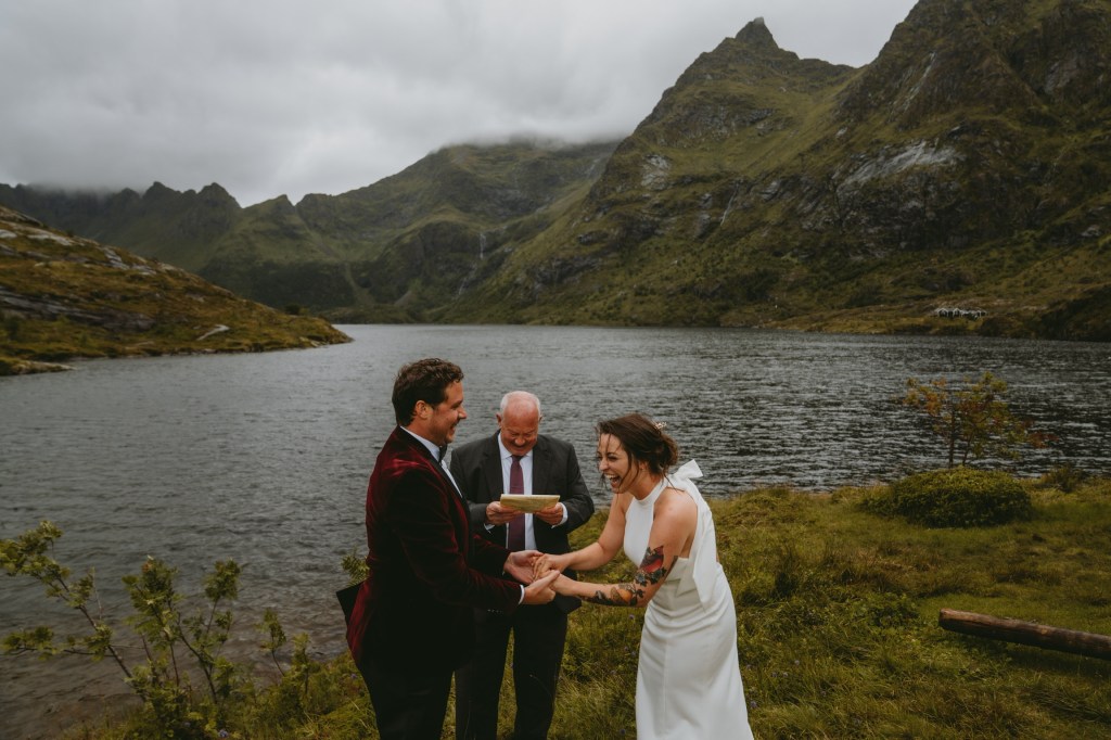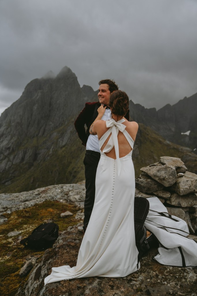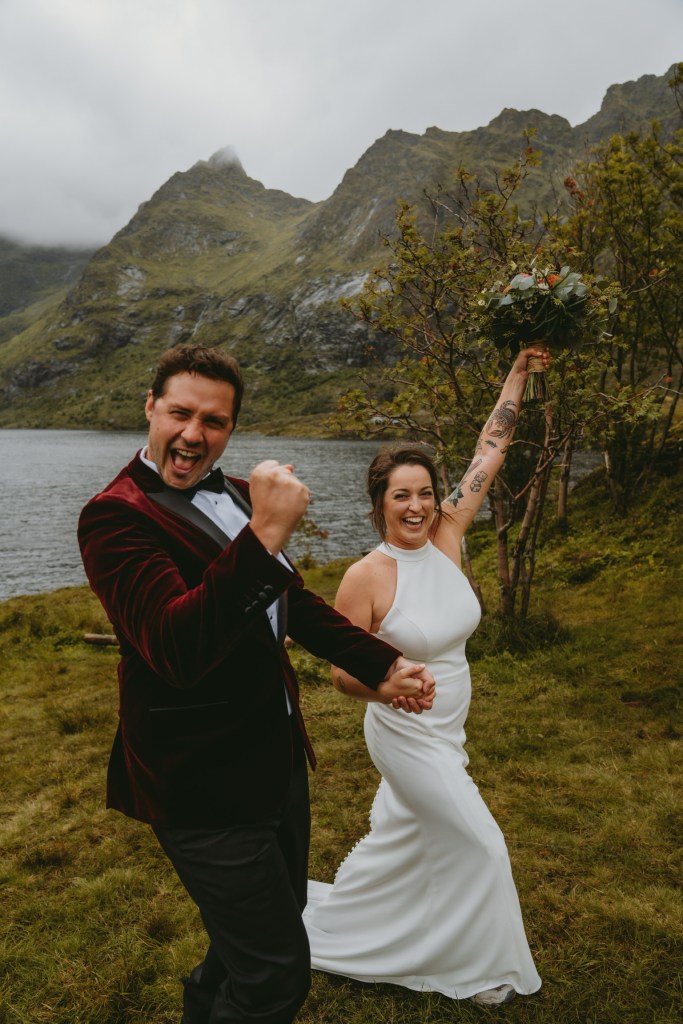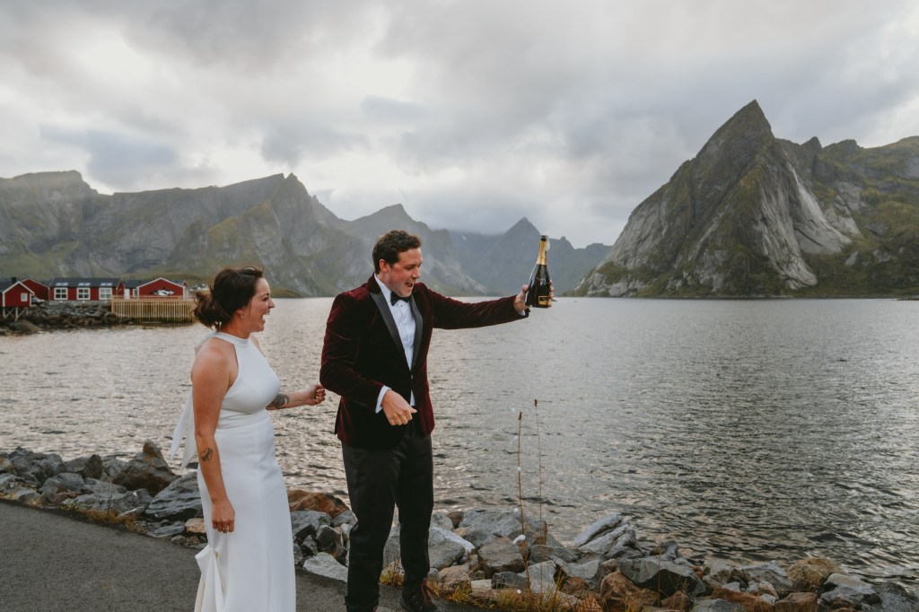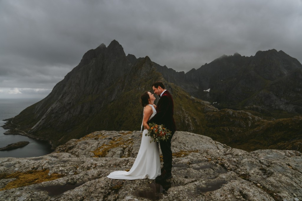 Though neither of us had ever been to Norway before, we chose it as our wedding location after consulting with people who had been there. We were told stories of dramatic mountains that look like shark teeth that dive straight down into Arctic fjords, creating landscapes that don’t exist anywhere else in the world. We got there and, holy s***, they were right.