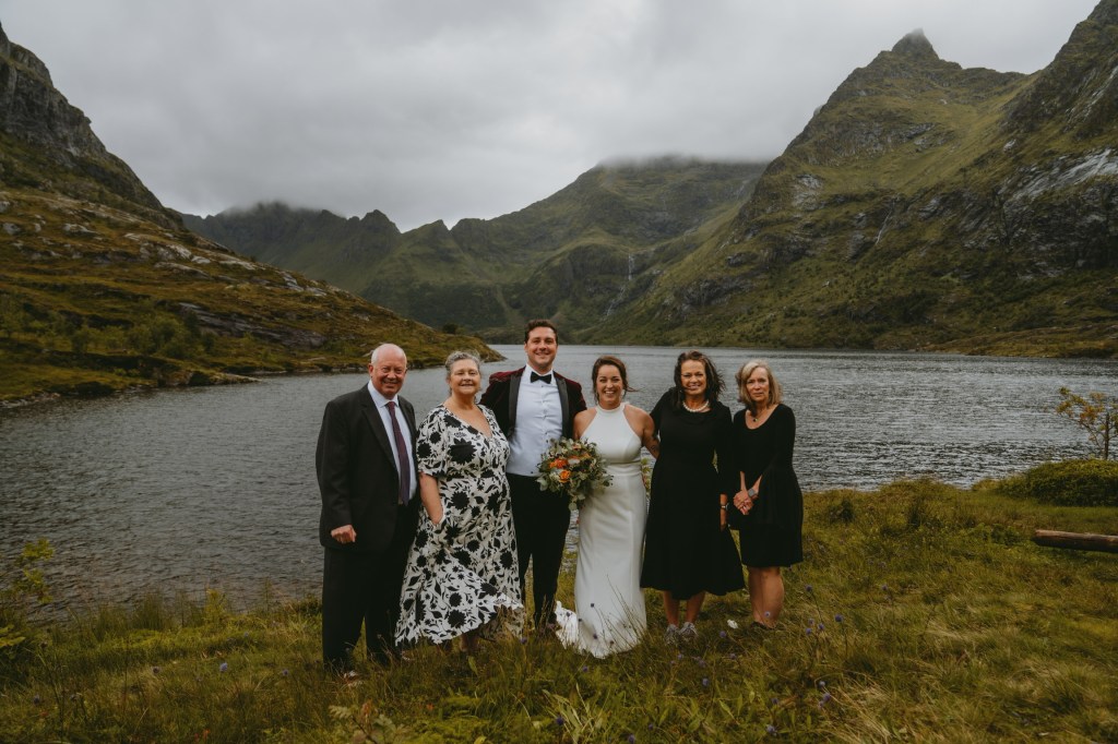 Sharp jagged cliffs, transparent blue water, bright colors and wild weather — the beauty of Lofoten was both humbling and jaw-dropping, and turned out to be a perfect location for our wedding.