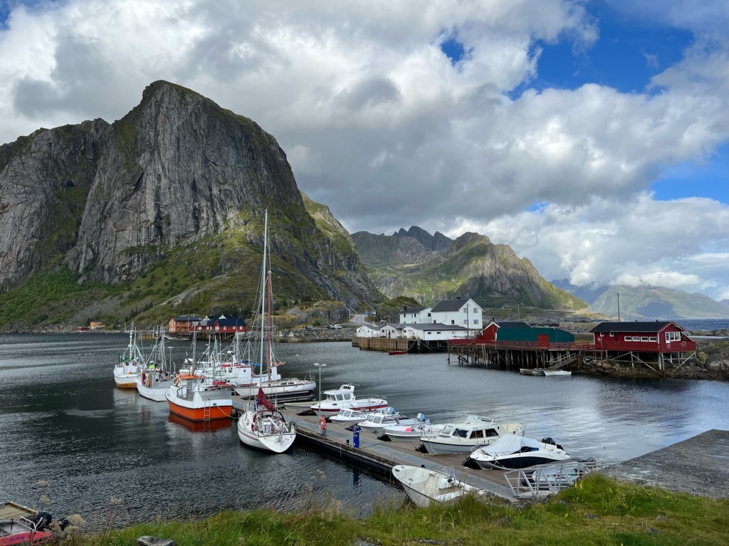 Pam, John, Nita and Dodie had some flight troubles (the tiny airport in Leknes isn’t equipped with radar, so planes can’t land if it’s foggy), which pushed their arrival back to Monday morning — the day before the wedding. We spent the day walking around the village, taking pictures, and driving around the area to experience the landscapes.